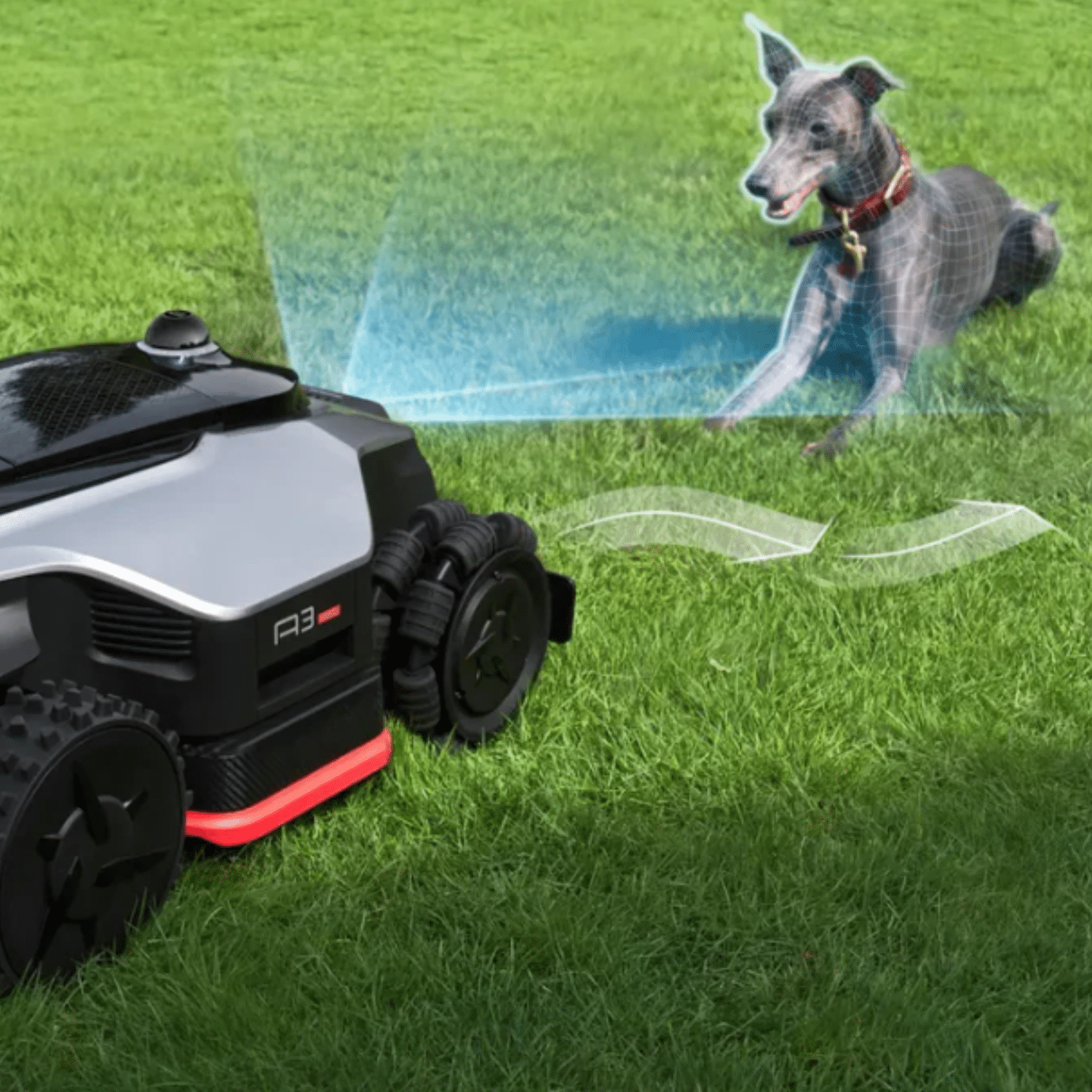 Der Mähroboter erkennt Hindernisse frühzeitig und weicht ihnen aktiv aus, sodass Menschen, Tiere und Gegenstände zuverlässig geschützt werden und der Mähvorgang ohne Unterbrechungen fortgesetzt werden kann.