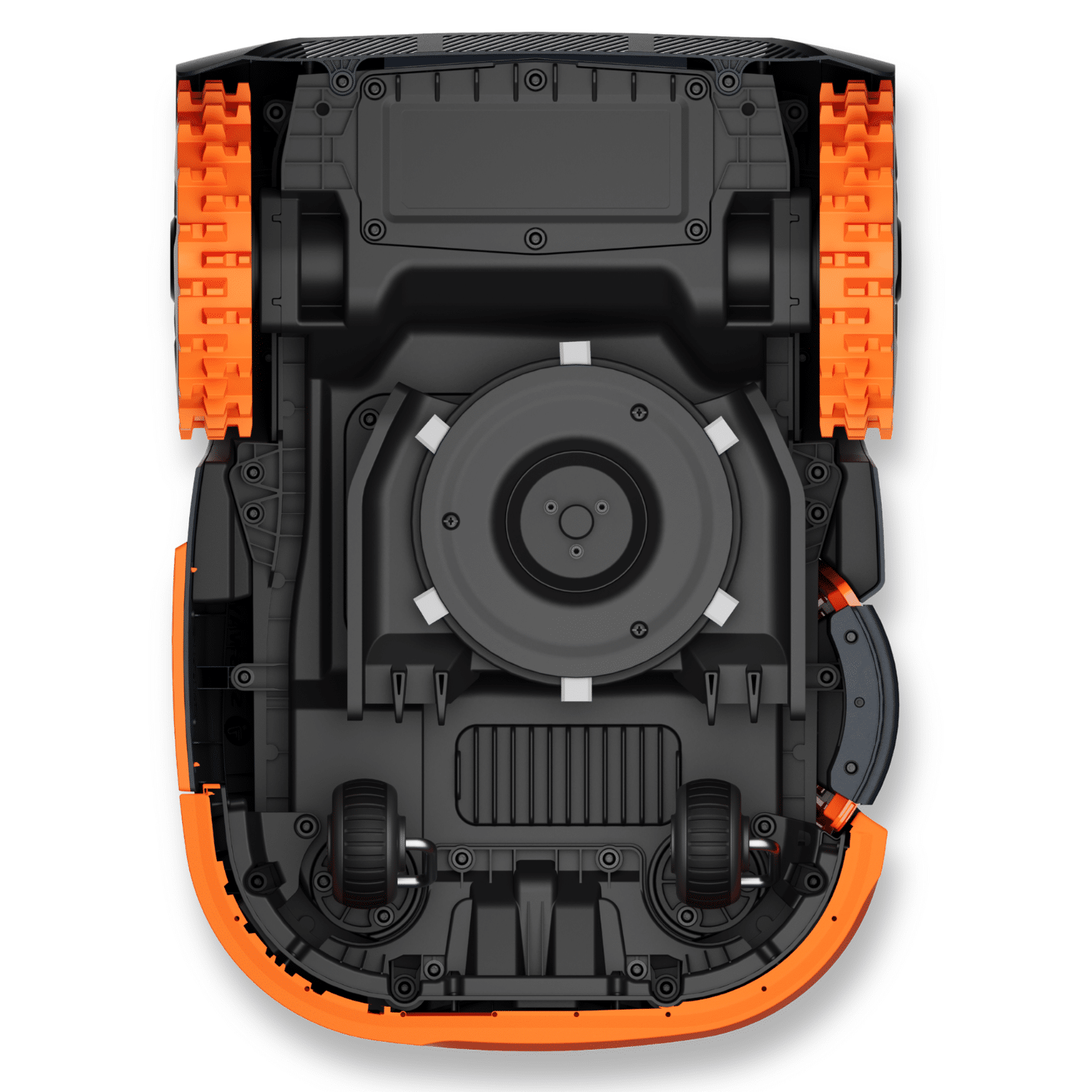 Leistungsstarkes und wartungsarmes Mähsystem – Ein starker Messermotor mit einer Messerscheibe und 6 Klingen sorgt für ein gleichmäßiges Schnittbild. Das integrierte Anti-Verstopfungsmodul gewährleistet zuverlässiges Mähen auch bei dichtem oder feuchtem Gras.